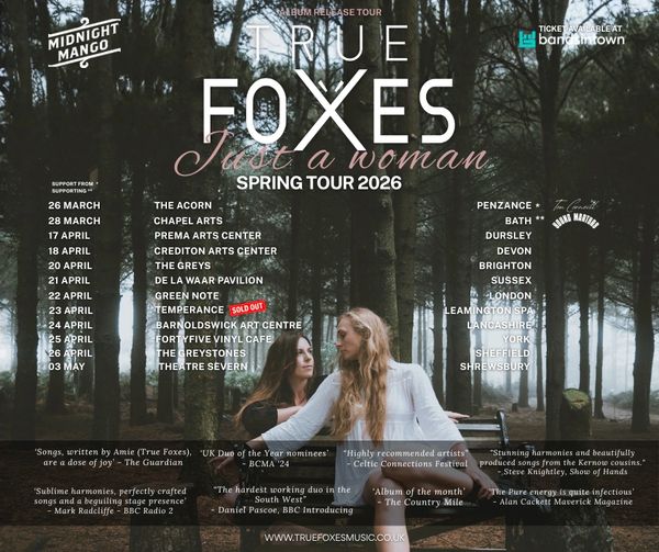 In the autumn, True Foxes joined forces with folk legend Steve Knightley on his Winter Yards UK tour, Joining Will Keating at Hall For Cornwall, then closely followed by a True Foxes headline tour with Take Art - Rural Touring.